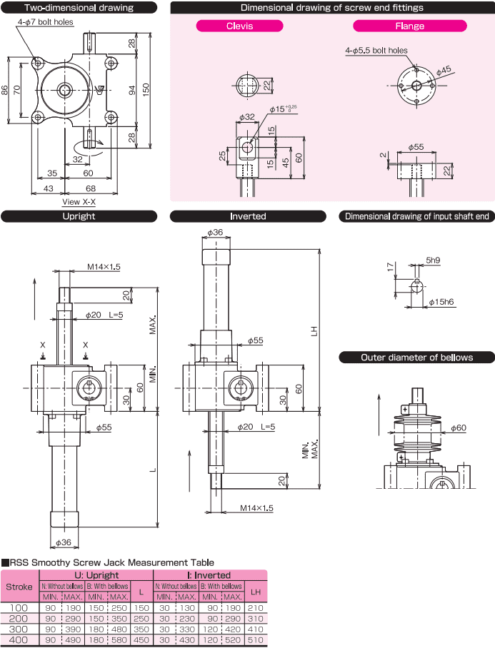 - Kích ren Nippon RSS (Nippon screw jack RSS) có sức nâng max: 5 kN (0.5 tấn), với hành trình dài tùy chọn theo nhu cầu của khách hàng.