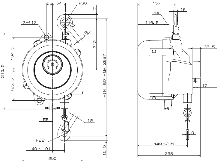 - Trọng lượng pa lăng cân bằng ELF-60 tiêu chuẩn: 17.1 kg.