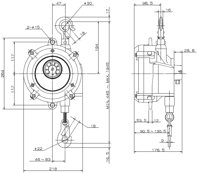 PA LĂNG CÂN BẰNG ENDO EWA-30 | ENDO SPRING BALANCER EWA-30 | 22 - 30 kg | 1.3 m