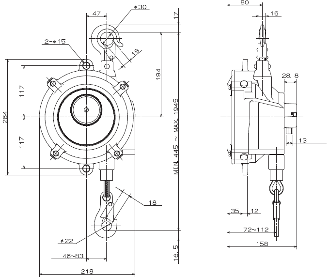 - Trọng lượng pa lăng cân bằng EWF-30 tiêu chuẩn: 7.7 kg.