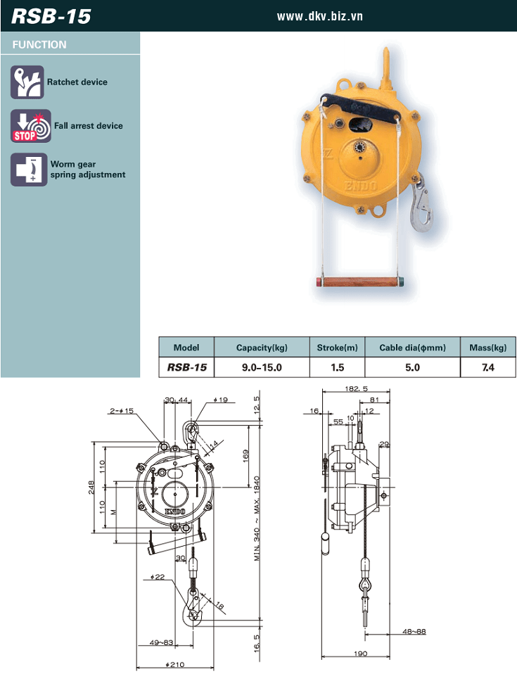 - Pa lăng cân bằng RSB-15 được sản xuất bởi Endo Kogyo - Niigata - Nhật Bản. Made in Japan.
