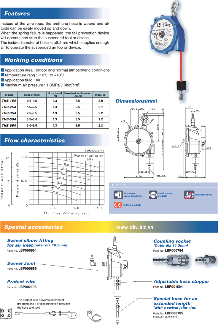 - Pa lăng cân bằng Endo THB-65A có đường kính dây cáp khí nén: 8.5 (Φ mm)., được thiết kế nhỏ gọn, dùng để treo các vật dụng nhẹ như tô vít lực,máy khoan mini, dụng cụ tháo lắp dùng khí nén, vv....vv....