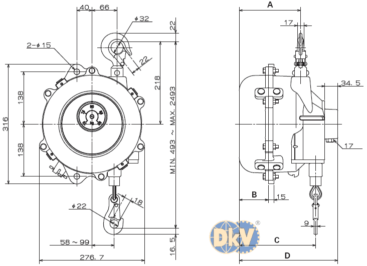 PA LĂNG CÂN BẰNG IPUDA EW-100 | IPUDA SPRING BALANCER EW-100 | 80 - 100 kg | 1.5 m