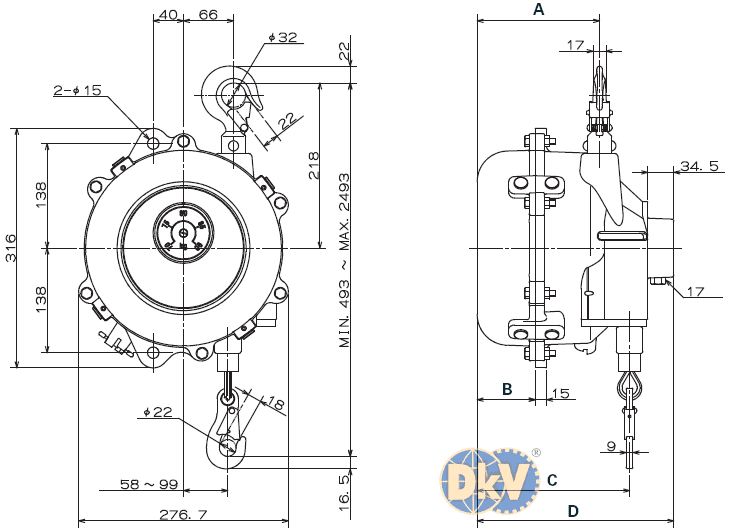 PA LĂNG CÂN BẰNG IPUDA EWF-120 | IPUDA SPRING BALANCER EWF-120 | 100 - 120 kg | 2 m