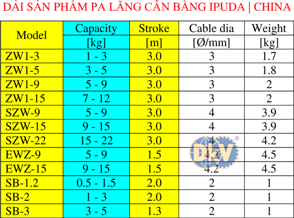 - Pa lăng cân bằng Ipuda ZW1-3, Ipuda Sring balancer ZW1-3: là loại pa lăng cân bằng hay còn gọi (Pa lăng lò xo tự rút) của hãng Ipuda, có sức nâng từ: 1 - 3 kg , hành trình: 3 m.
