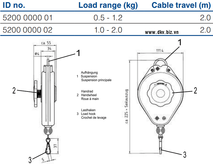 - Pa lăng cân bằng Carl Stahl Kromer 5200 0000 01 có vỏ bằng nhựa chịu va đập và mài mòn, cable treo làm bằng chất liệu Polyamit độ bền cao. Trọng lượng: 0.6 kg.