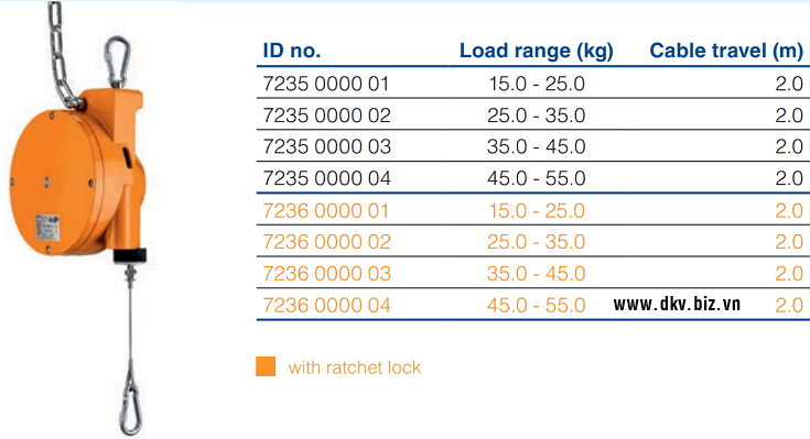 - Pa lăng cân bằng Carl Stahl Kromer 7236 0000 04, Carl Stahl Kromer balanced 7236 0000 04: là loại pa lăng cân bằng hay còn gọi (Pa lăng lò xo tự rút) có sức nâng max: 45 - 55 kg, hành trình nâng hạ max: 2 m, chuyên dùng để treo các loại súng hoặc vật dụng trong nhà xưởng, cần thao tác nhanh.