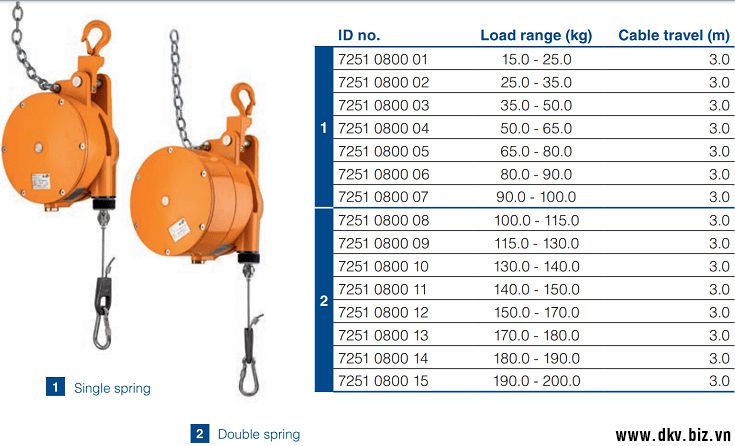 - Pa lăng cân bằng Carl Stahl Kromer 7251 0800 08, Carl Stahl Kromer balanced 7251 0800 08: là loại pa lăng cân bằng hay còn gọi (Pa lăng lò xo tự rút) có sức nâng max: 100 - 115 kg, hành trình nâng hạ max: 3 m, chuyên dùng để treo các loại súng hoặc vật dụng trong nhà xưởng, cần thao tác nhanh.