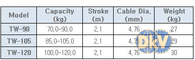 - Pa lăng cân bằng Tigon TW-90, Tigon Sring balancer TW-90: là loại pa lăng cân bằng hay còn gọi (Pa lăng lò xo tự rút) của hãng Tigon thuộc dòng series TW, có sức nâng từ: 70 - 90 kg , hành trình: 2.1 m, đường kính cáp: 4.76 mm, chuyên dùng để treo các loại súng hoặc vật dụng trong nhà xưởng, cần thao tác nhanh.