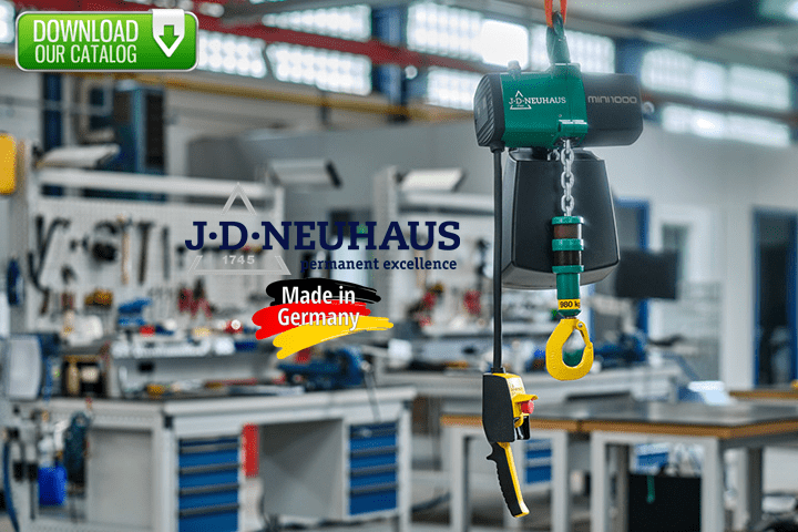 - Pa lăng xích khí nén JDN MINI 125 được sản xuất bởi J.D. Neuhaus GmbH & Co. KG, Witten, Germany. Made in Germany (CO Phòng thương mại Đức). DKV VIET NAM CO.,LTD nhập khẩu trực tiếp từ Đức và phân phối service.