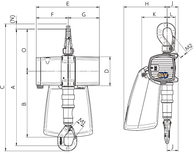 - Pa lăng xích khí nén JDN MINI 125 sử dụng động cơ khí nén 0.45 kW: lưu lượng khí đạt 0.95 m3/phút, áp khí nén đầu vào max: 6 bar, độ ồn max: 78 - 80 dB(A), đường ống dẫn khí: 13 mm (1/2"), cho nâng hạ với vận tốc nâng: 20 m/phút (khi nâng tải) và 40 m/phút (khi hạ tải), đảm bảo nâng hạ mượt mà, thông qua điều khiển cầm tay với 2 nút (up/down | lên/xuống) cùng nút dừng khẩn cấp. Chiều dài dây điều khiển tiêu chuẩn: 2, 4 và 7 m (Option).