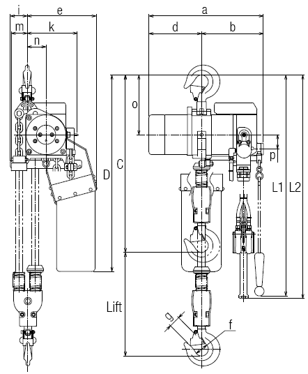 - Pa lăng xích khí nén Kito TCRH20PD, trang bị 2 đường dây xích tải, xích tải được chế tạo từ thép hợp kim, đường kính đốt xích tải Ø 7.1 mm, chế tạo theo tiêu chuẩn ISO3077-1984 chất lượng độ chính xác cao, đảm bảo khả năng chịu tải lớn. Ngoài chiều cao nâng tiêu chuẩn 3 m, có thể chọn lựa xích tải có hành trình nâng cao hơn để phù hợp với nhu cầu của khách hàng (Option), 2.44 kg/mét xích tải.