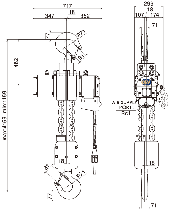- Pa lăng xích khí nén SAN-EI GLX15LP được sản xuất bởi SAN-EI SEIKI SEISAKUSHO CO., LTD - Fukushima - Japan. Made in Japan (CO Phòng thương mại Osaka | Japan). DKV VIET NAM CO.,LTD nhập khẩu trực tiếp từ Nhật Bản và phân phối service.