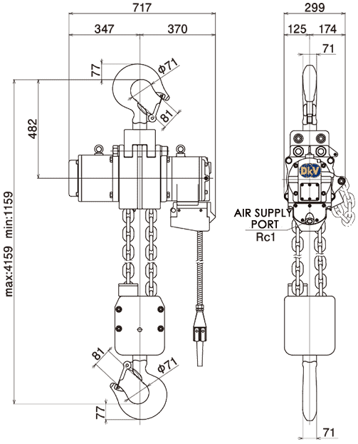 PA LĂNG XÍCH KHÍ NÉN SAN-EI GLX20LP | SAN-EI AIR CHAIN HOIST GLX20LP | 20 tấn | 3 m