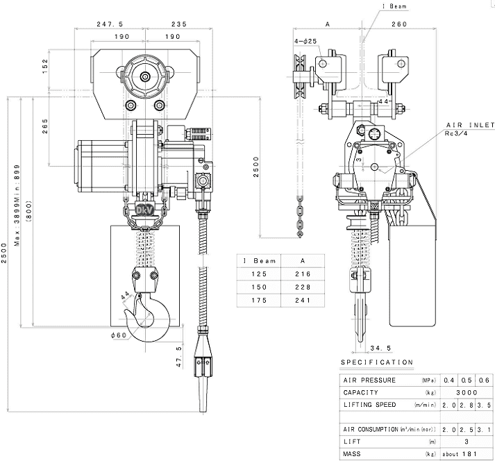 PA LĂNG XÍCH KHÍ NÉN SAN-EI VHX300LP-GR | SAN-EI AIR CHAIN HOIST VHX300LP-GR | 2.9 tấn | 3 m
