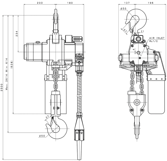 PA LĂNG XÍCH KHÍ NÉN SAN-EI VMX200LP | SAN-EI AIR CHAIN HOIST VMX200LP | 2 tấn | 3 m
