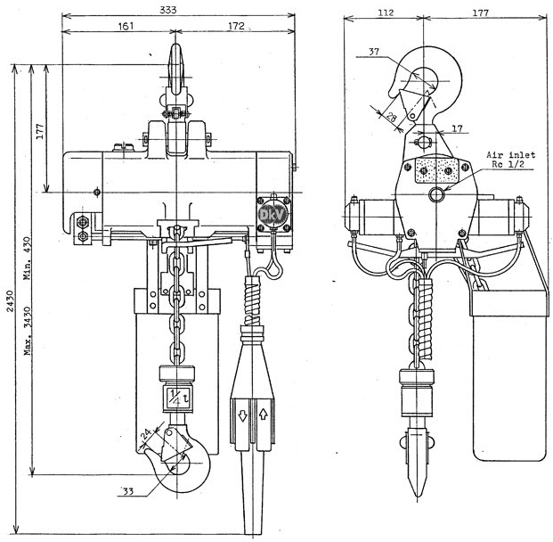 PA LĂNG XÍCH KHÍ NÉN SAN-EI VLX25LP | SAN-EI AIR CHAIN HOIST VLX25LP | 0.25 tấn | 3 m