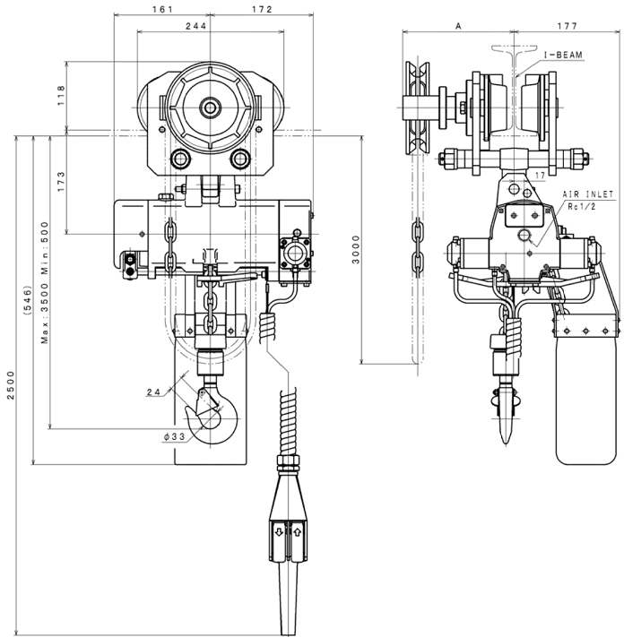 PA LĂNG XÍCH KHÍ NÉN SAN-EI VLX25LP-GR | SAN-EI AIR CHAIN HOIST VLX25LP-GR | 0.25 tấn | 3 m