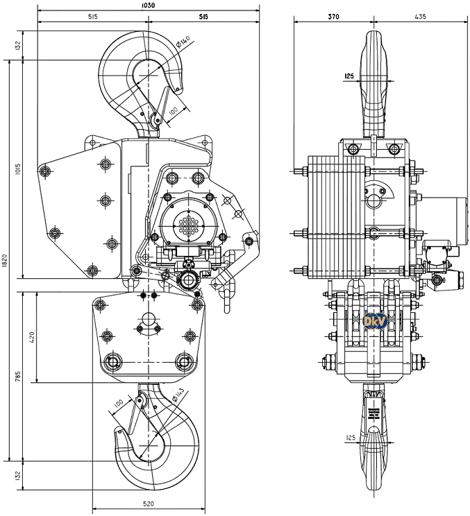 - Pa lăng xích khí nén Toku TMH-50T/4, trang bị 4 đường dây xích tải, xích tải được chế tạo từ thép hợp kim, đường kính đốt xích tải Ø 23.5 mm, chiều dài đốt xích: 66 mm, chế tạo theo tiêu chuẩn ISO3077-1984 chất lượng độ chính xác cao, đảm bảo khả năng chịu tải lớn. Ngoài chiều cao nâng tiêu chuẩn 3 m, có thể chọn lựa xích tải có hành trình nâng cao hơn để phù hợp với nhu cầu của khách hàng (Option).