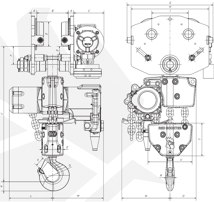 - Pa lăng xích khí nén Toku TMH-9000/3-AT10S, trang bị 3 đường dây xích tải, xích tải được chế tạo từ thép hợp kim, đường kính đốt xích tải Ø 13 mm, chiều dài đốt xích: 36 mm, chế tạo theo tiêu chuẩn ISO3077-1984 chất lượng độ chính xác cao, đảm bảo khả năng chịu tải lớn. Ngoài chiều cao nâng tiêu chuẩn 3 m, có thể chọn lựa xích tải có hành trình nâng cao hơn để phù hợp với nhu cầu của khách hàng (Option).