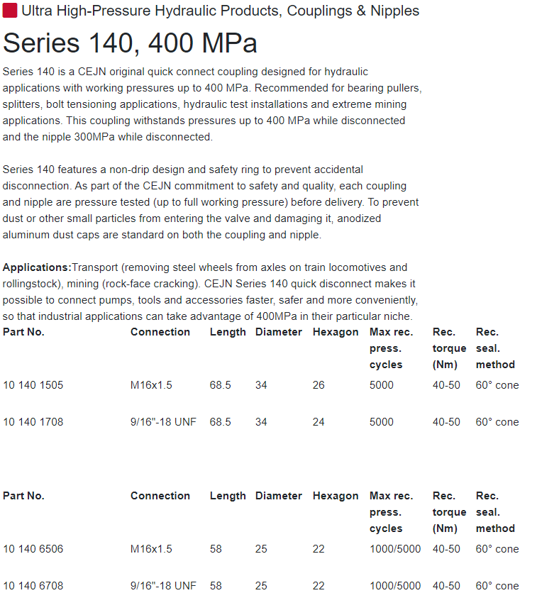 COUPLER CEJN SERIES 140 | ĐẦU KẾT NỐI CEJN SERIES 140 | CEJN COUPLINGS & NIPPLES SERIES 140 | 4000 bar
