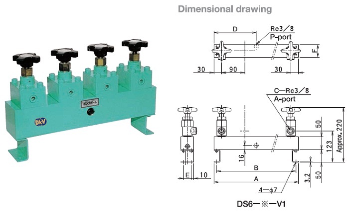- Đầu chia thủy lực DS6-4-V1 dùng để chia dòng dầu thủy lực, với 1 đầu vào, 4 đầu ra. Sử dụng cho kích thủy lực, tools thủy lực 1 chiều.