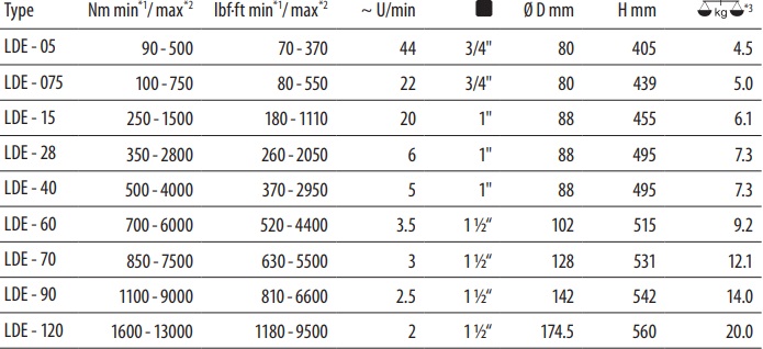 - Sai số chế tạo của súng siết bulong Gedore LDE-70 theo nhà sản xuất Gedore niêm yết: +-3%. Hai cấp tốc độ ( 1 - nhanh, 2 - chậm), được chuyển đổi nhanh chóng nhờ phím gạt (trái/phải) trên thân súng. Tốc độ vòng quay trung bình khi có tải: 3 vòng/phút.