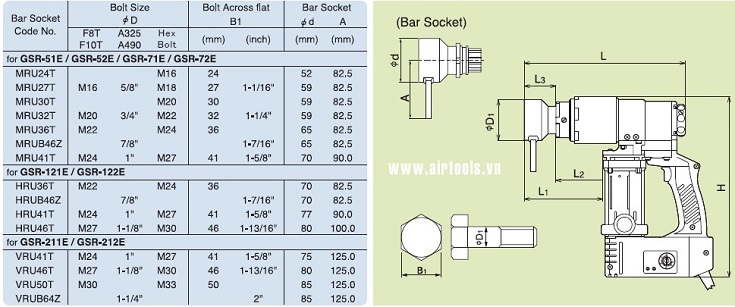 - Súng siết bulong Tone GSR-72E cho phép siết các loại bulong M16 - M27 (tiêu chuẩn bulong S10T/Japan) thỏa mãn siết đa số các loại bulong trong lắp ghép thép phổ dụng.