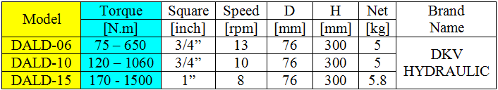- Sai số chế tạo súng siết lực bulong khí nén DALD-06 theo nhà sản xuất DKV HYDRAULIC niêm yết: +- 5%. Tốc độ vòng quay trung bình khi không tải: 13 vòng/phút.