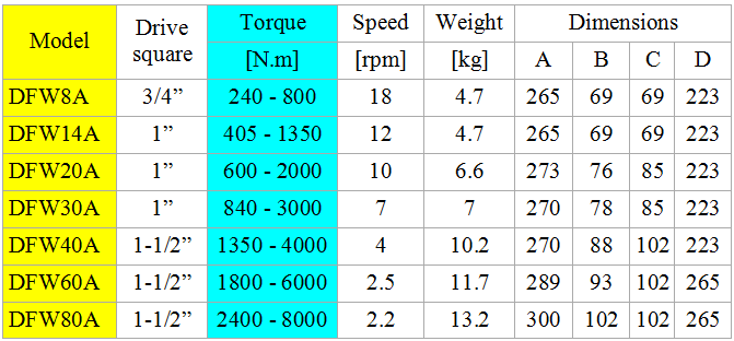 SÚNG SIẾT LỰC BULONG KHÍ NÉN DFW8A | AIR TORQUE WRENCH DFW8A | 240 - 800 N.m | 3/4"