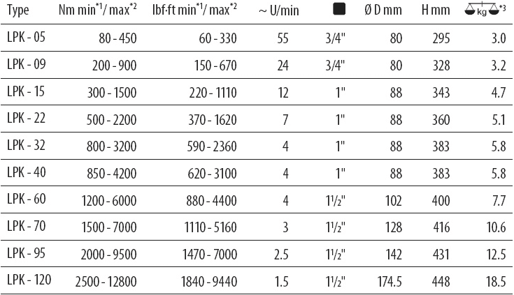 - Súng siết lực bulong khí nén Gedore LPK-05, Gedore air torque wrench LPK-05 là loại súng siết bulong cài đặt được lực siết chính xác, sử dụng nguồn khí nén, với dải lực siết: 80 - 450 N.m, cỡ khẩu: 3/4", chuyên dùng để siết lực (moment) chính xác các loại bulong cường độ cao trong công nghiệp.