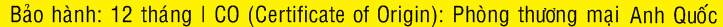 - Bảo hành: 12 tháng (theo tiêu chuẩn nhà sản xuất).