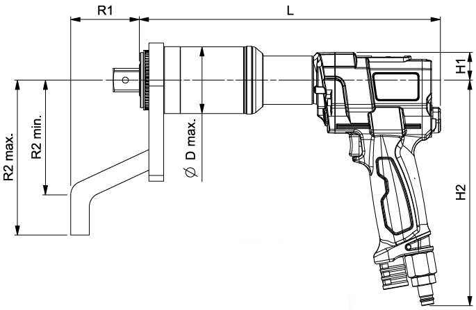 - Cơ cấu đảo chiều quay (chiều siết) phía đuôi súng dạng tay gạt, cho phép đảo chiều nhanh chóng.
