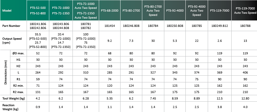 - Về tổng thể, súng siết bulong khí nén PTS-52-500 có 1 cấp tốc độ, cấu tạo và nguyên tắc hoạt động khá đơn giản, ít chắc năng so với nhiều súng của các hãng khác.