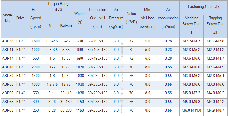 TÔ VÍT LỰC KHÍ NÉN SUMAKE ABP38 | SUMAKE AIR TORQUE SCREWDRIVER ABP38 | 2.5 N.m | Hex.1/4"