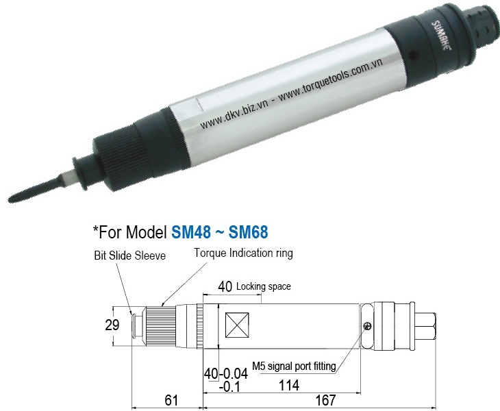 - Tô vít lực khí nén Sumake SM48, Sumake air torque screwdriver SM48 có lực siết: 0. 5 - 4.5 N.m (5 - 45 Kgf.cm) chuyên dùng để siết lực chính xác các loại vít tiêu chuẩn trong công nghiệp. Tô vít lực điện Sumake SM48 được chế tạo và sản xuất bởi Sumake/Đài Loan.