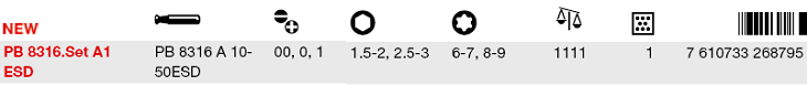 Bộ tô vít lực PB Swiss PB 8316.Set A1 ESD gồm 8 chi tiết: