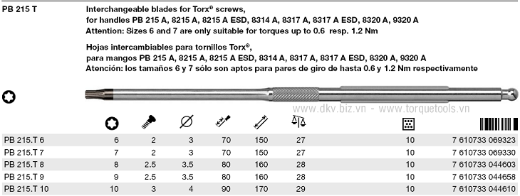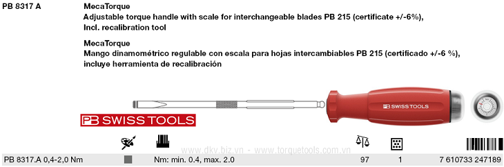 - Tô vít lực PB 8317.A 0,4-2,0 Nm (0.4 - 2 N.m): 1 chiếc.