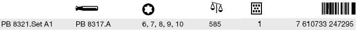 Bộ tô vít lực PB Swiss PB 8321.Set A1 gồm 6 chi tiết: