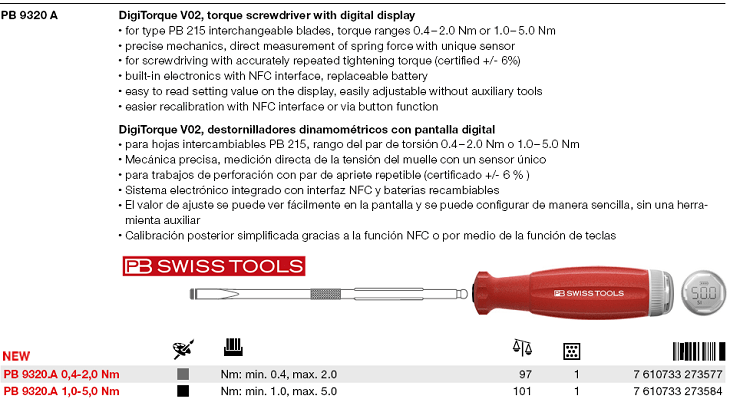 BỘ TÔ VÍT LỰC PB SWISS PB 9320.Set A3 | BỘ TÔ VÍT SIẾT LỰC PB SWISS PB 9320.Set A3 | 1 - 5 N.m | 6 pcs