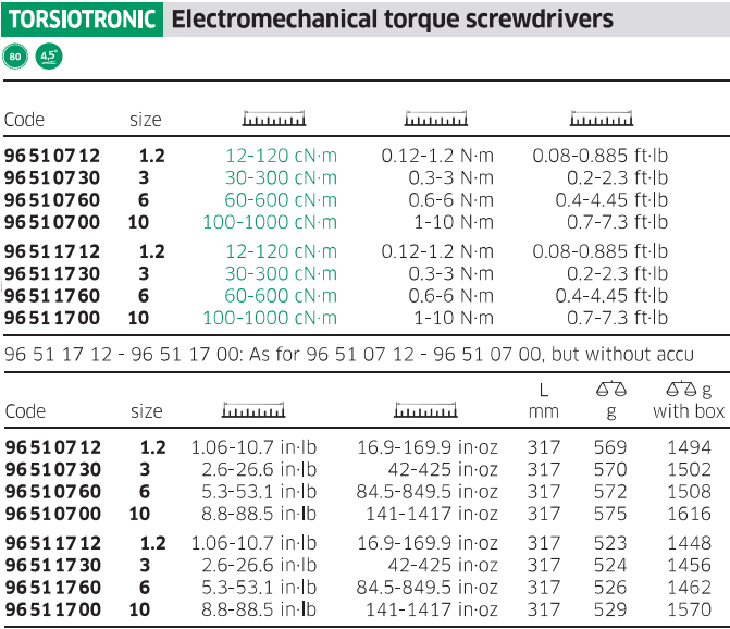 - Chiều dài 317 mm. Trọng lượng: 529 g. Tô vít lực điện tử Stahlwille 96511700 không trang bị thêm Pin đi kèm.