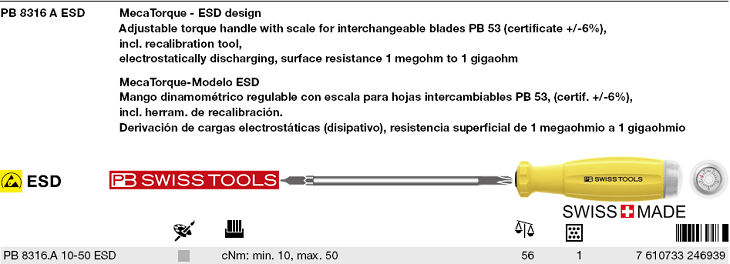 TÔ VÍT LỰC CHỐNG TỪ TÍNH PB SWISS PB 8316.A 10-50 ESD | TÔ VÍT SIẾT LỰC CHỐNG TỪ TÍNH PB SWISS PB 8316.A 10-50 ESD | PB SWISS ESDTORQUE SCREWDRIVER PB 8316.A 10-50 ESD | 0.1 - 0.5 N.m