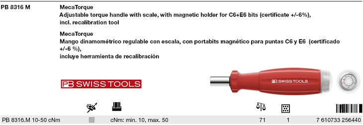 TÔ VÍT LỰC PB SWISS PB 8316.M 10-50 cNm | TÔ VÍT SIẾT LỰC PB SWISS PB 8316.M 10-50 cNm | PB SWISS TORQUE SCREWDRIVER PB 8316.M 10-50 cNm | 0.1 - 0.5 N.m