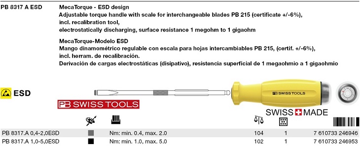 TÔ VÍT LỰC CHỐNG TỪ TÍNH PB SWISS PB 8317.A 0,4-2,0ESD | TÔ VÍT SIẾT LỰC CHỐNG TỪ TÍNH PB SWISS PB 8317.A 0,4-2,0ESD | PB SWISS ESDTORQUE SCREWDRIVER PB 8317.A 0,4-2,0ESD | 0.4 - 2 N.m