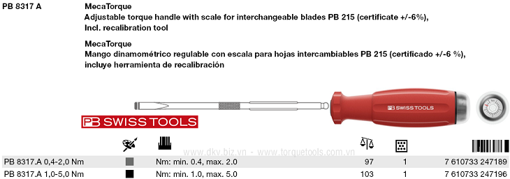 TÔ VÍT LỰC PB SWISS PB 8317.A 0,4-2,0 Nm | TÔ VÍT SIẾT LỰC PB SWISS PB 8317.A 0,4-2,0 Nm | PB SWISS TORQUE SCREWDRIVER PB 8317.A 0,4-2,0 Nm | 0.4 - 2 N.m