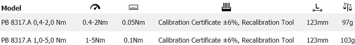 - Sai số chế tạo: +/- 6%. Sử dụng vít chuyên dụng PB 215 của PB Swiss, kết nối với tô vít lực PB 8317.A 1,0-5,0 Nm kiểu cắm rút nhanh.