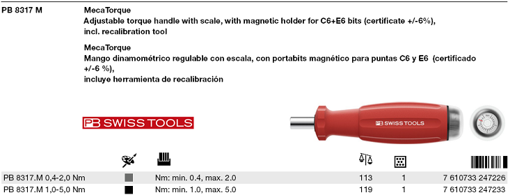 TÔ VÍT LỰC PB SWISS PB 8317.M 0,4-2,0 Nm | TÔ VÍT SIẾT LỰC PB SWISS PB 8317.M 0,4-2,0 Nm | PB SWISS TORQUE SCREWDRIVER PB 8317.M 0,4-2,0 Nm | 0.4 - 2 N.m