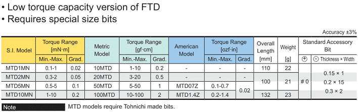 - Sai số chế tạo tô vít lực Tohnichi MTD10MN cho phép: +/-3%. Chiều dài: 132 mm, trọng lượng: 23 g, chế tạo theo tiêu chuẩn phổ biến ISO 6789 Class.