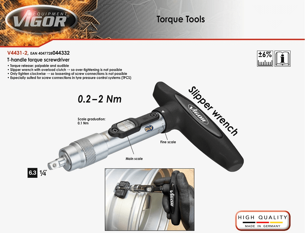 - Tô vít lực Vigor V4431-2 được chế tạo theo tiếu chuẩn DIN EN ISO 6789.