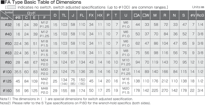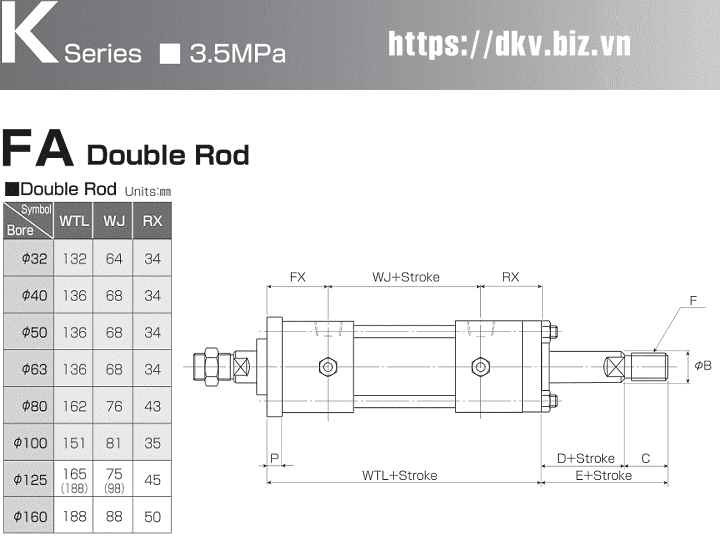 - Xy lanh thủy lực Horiuchi dòng K (kiểu FA Double Rod) có đường kính xy lanh: Ø32 ÷ Ø 160 mm, với hành trình max: 1.000 - 1.800 mm.